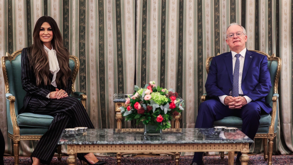 Με μαύρο κοστούμι σε αυστηρό επαγγελματικό τόνο και λευκό πουκάμισο η Κίμπερλι Γκιλφόιλ παρέδωσε την ενδεδειγμένη διαπίστευση και συνομιλησε με τον πολιτειακό ηγέτη της χώρας.