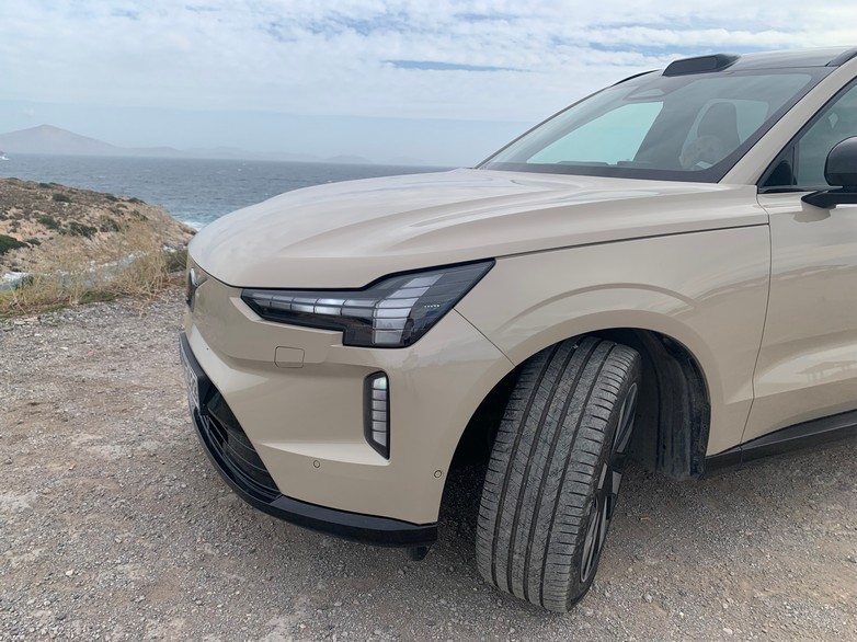 Στο δρόμο είναι ξεκούραστο. Είτε βρίσκεσαι σε μποτιλιαρισμένο δρόμο είτε σε ανοικτό στην εθνική οδό, το ΕΧ90 θα σε εντυπωσιάσει. Μην ξεχνάτε ότι αποδίδει 517 ίππους με 900+ Nm. Η επιτάχυνσή του από 0-100 χλμ είναι μόλις 4.9 δευτερόλεπτα. Οι οδηγοί που εγκαταλείπουν το αυτοκίνητο τους με το κινητήρα εσωτερικής καύσης και περνούν στην ηλεκτροκίνηση πρέπει μέχρι να εξοικειωθούν στις εκρηκτικές επιταχύνσεις να προσέχουν πόσο γρήγορα πατούν το γκάζι. Η τελική του EX90 μπορεί να ξεπεράσει τα 200χλμ./ώρα, αλλά η Volvo για να πετύχει μεγαλύτερη αυτονομία έχει βάλει κόφτη στα 180 χλμ.
